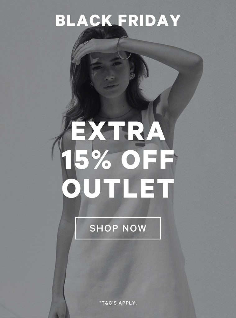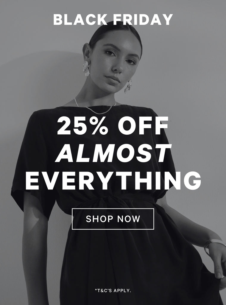 BLACK FRIDAY IS NOW LIVE - 25% OFF (ALMOST) EVERYTHING* + AN EXTRA 15% OFF OUTLET. DISCOUNTS AUTOMATICALLY APPLIED AT CHECKOUT.