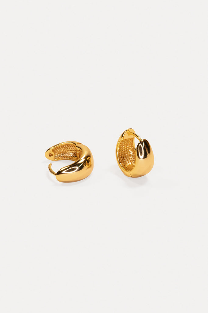 Discover The Everyday Domed Hoops - effortlessly cool for everyday. The chic, domed shape adds a modern statement to a classic hoop. Crafted from premium 18K fine gold vermeil, these hoops boast a luxurious finish while remaining super lightweight, ensuring all-day comfort. Elevate any outfit with this timeless, cool-girl style and enjoy a subtle yet impactful statement piece that complements every wardrobe; and will become your go-to jewellery staple for daily life.