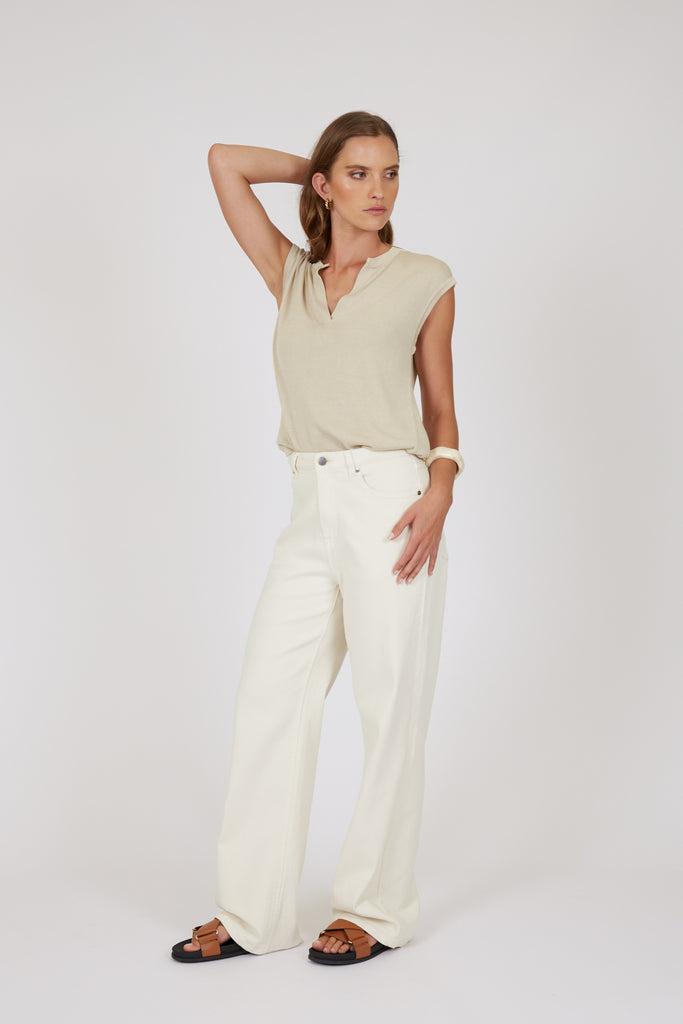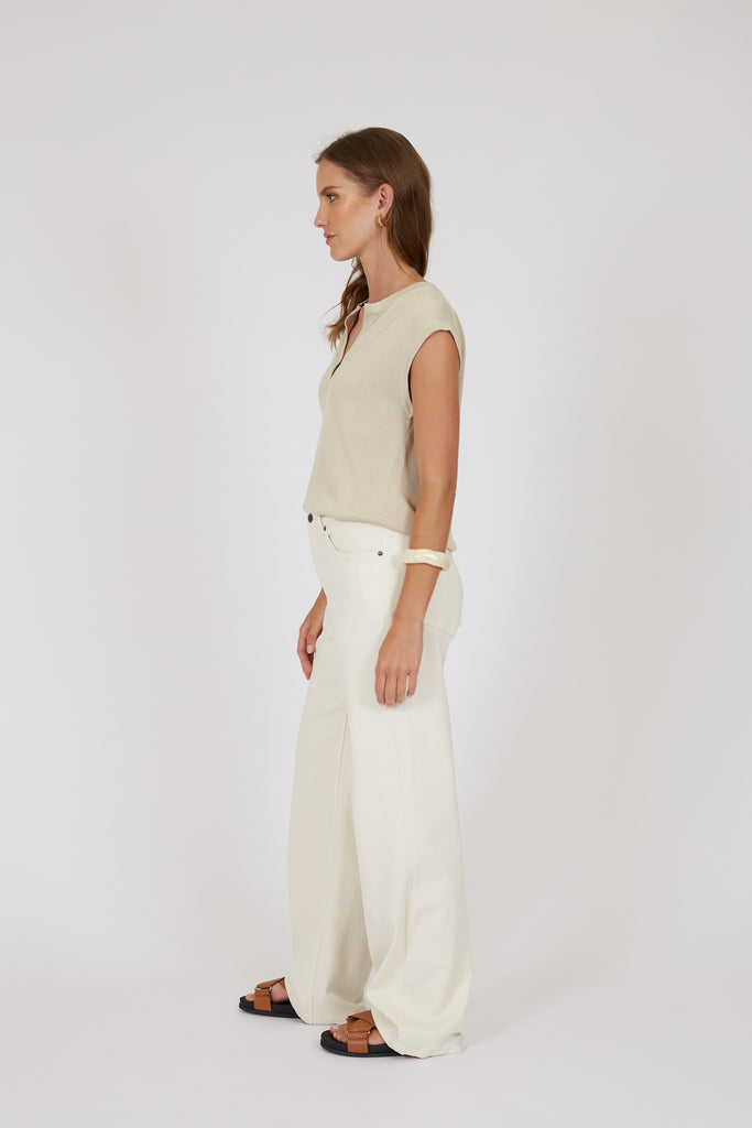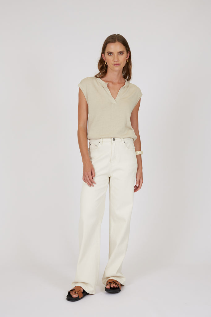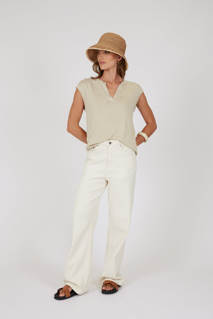 Our new Prima Knit Top is crafted from a luxurious cotton-modal blend that is soft to the touch and designed to drape beautifully over the body. Featuring a relaxed fit, this collarless style offers a 3/4 placket at the centre front, instantly giving you an elevated look. This knit top will quickly become a staple in your trans-seasonal wardrobe. We’re pairing ours with some lightweight linen pants, perfect for those breezy summer evenings.