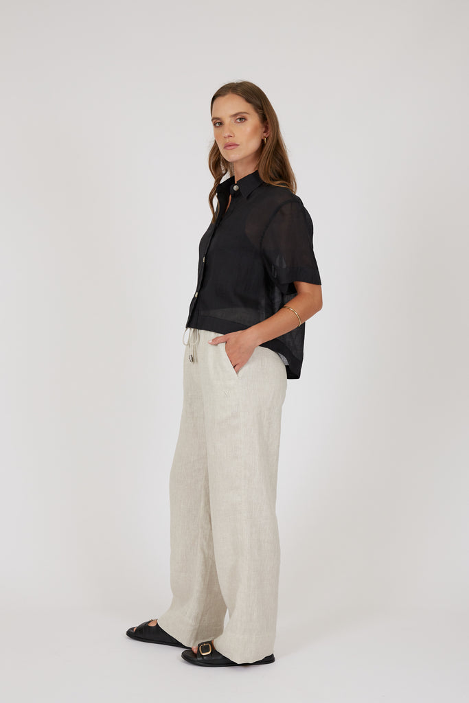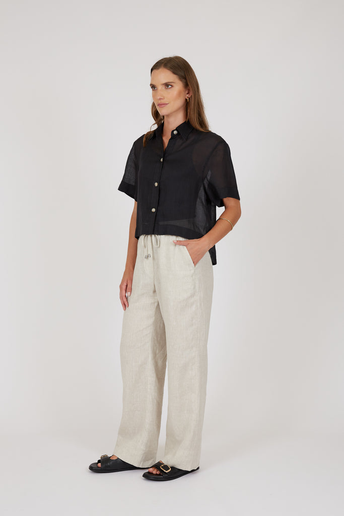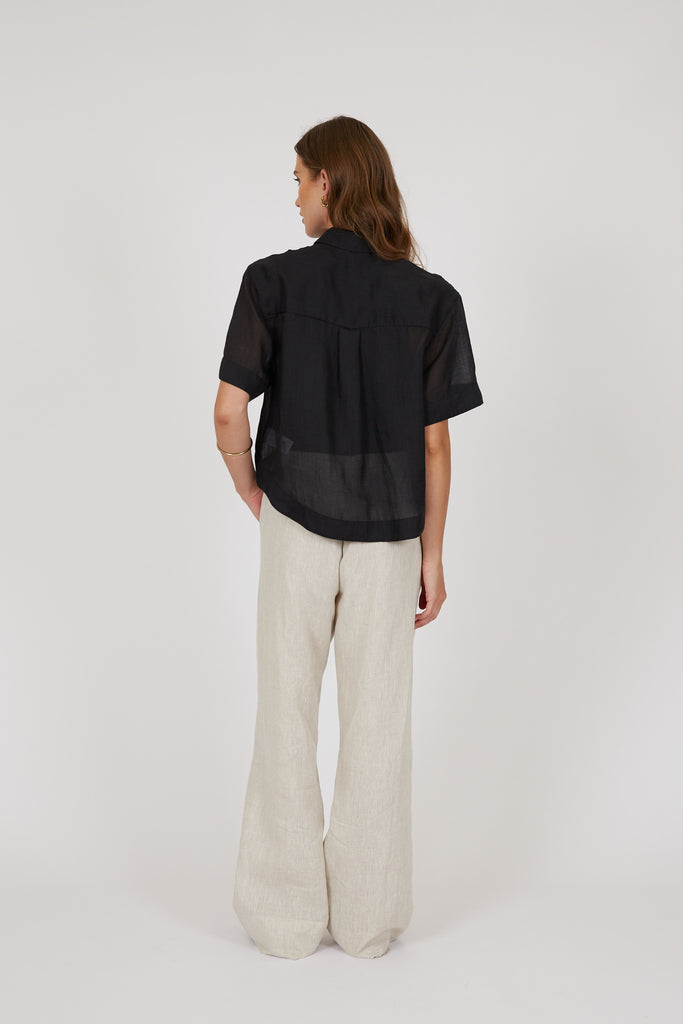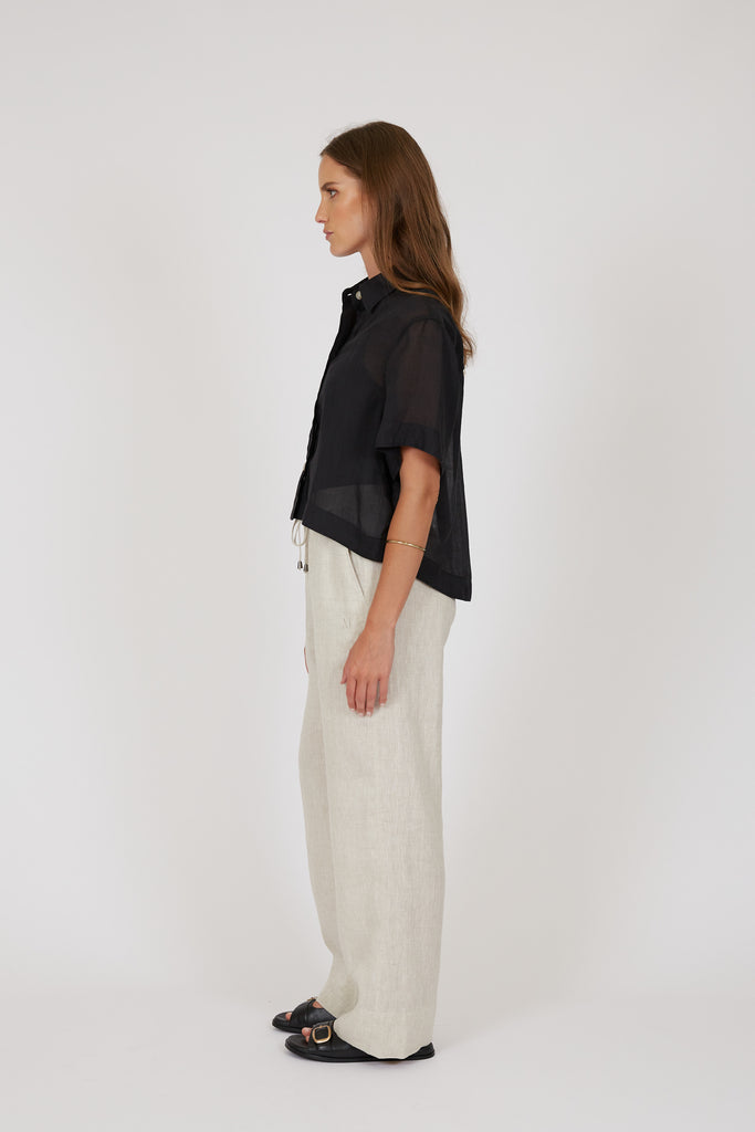 A warm-weather staple, the Dawn Shirt is a cropped, short-sleeve style designed in an easy, boxy fit. Crafted from breathable, lightweight Ramie with a slightly sheer finish, it’s the perfect light cover-up for the warmer months. Finished with tort buttons, wide cuffs, and a clean hem, this versatile piece can be layered buttoned up over a tank or worn open over your favourite sleeveless summer dresses.