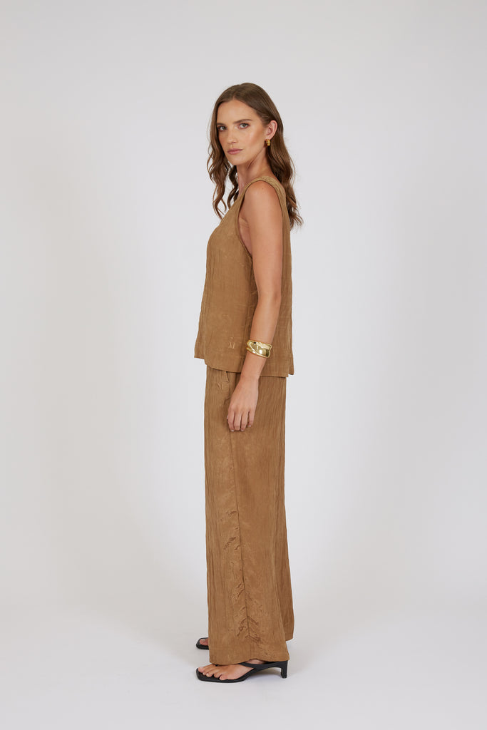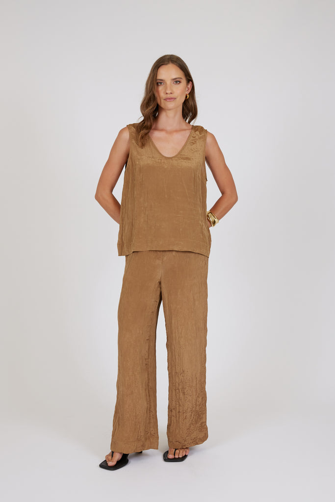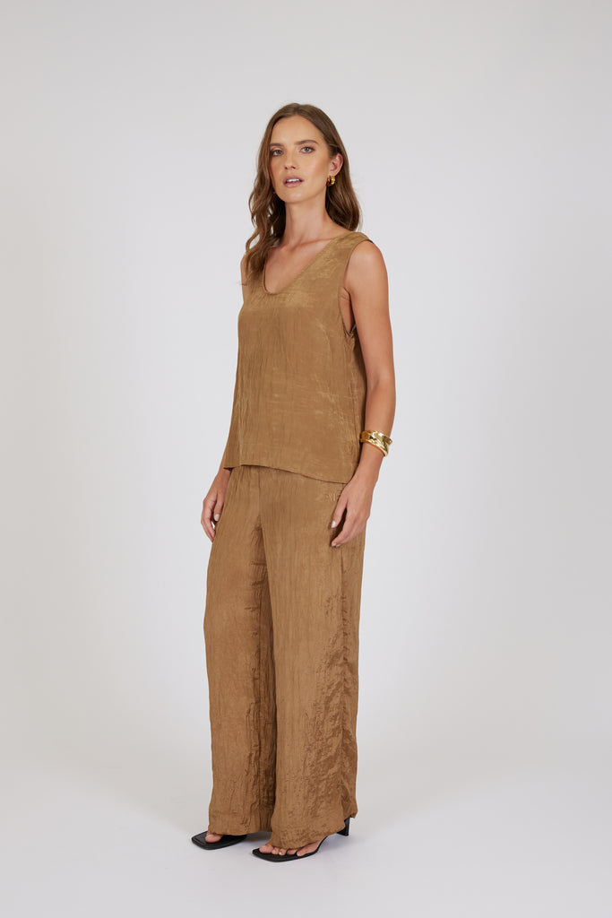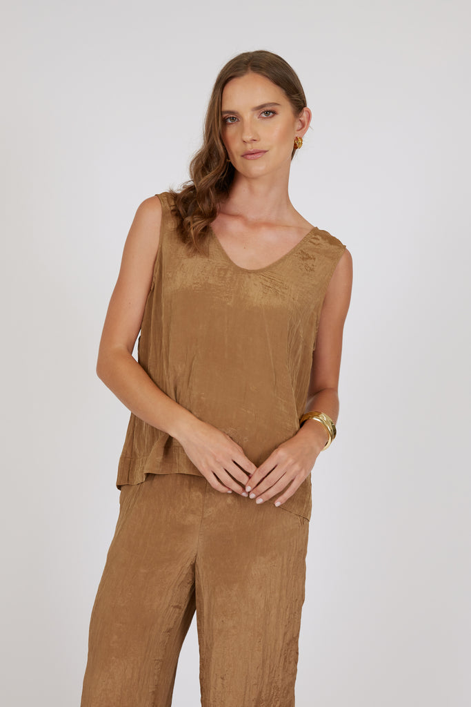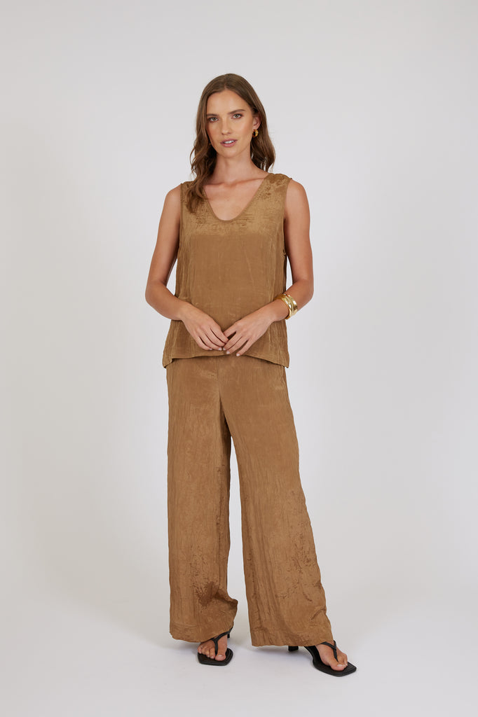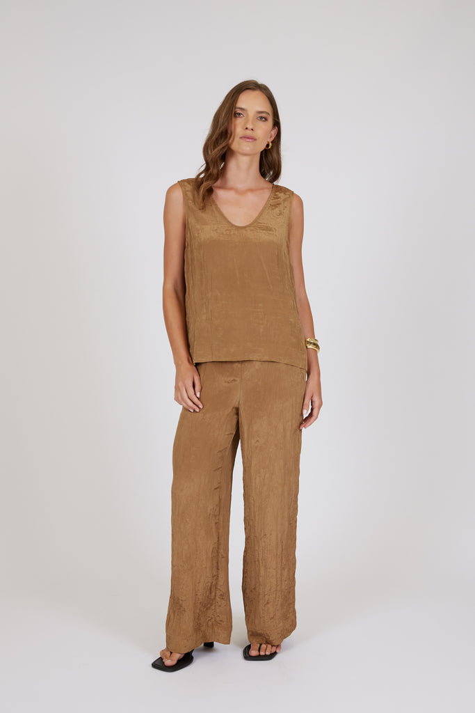 Understated yet elegant, the Lumi Tank is designed for effortless summer dressing. Crafted from a lightweight, crinkled fabric with a subtle sheen, it drapes beautifully in a relaxed, flowy fit. Featuring a scoop neckline and back and wide straps, it strikes the perfect balance between simplicity and sophistication. Pair with the matching Lumi Pant for an elevated, coordinated look.