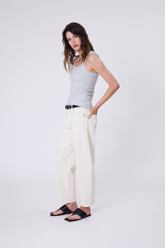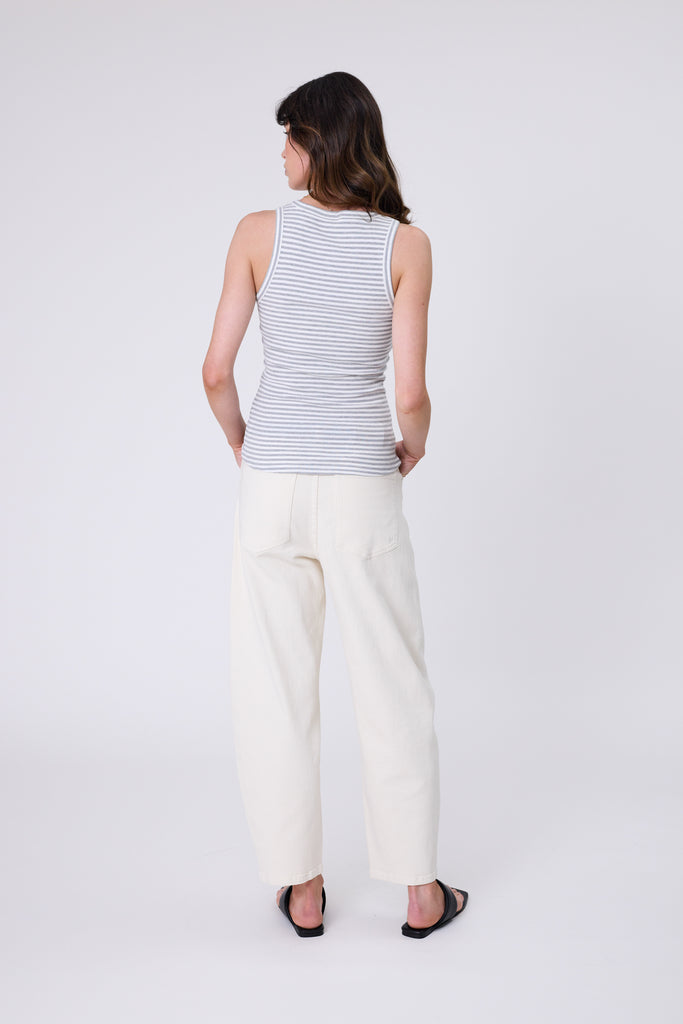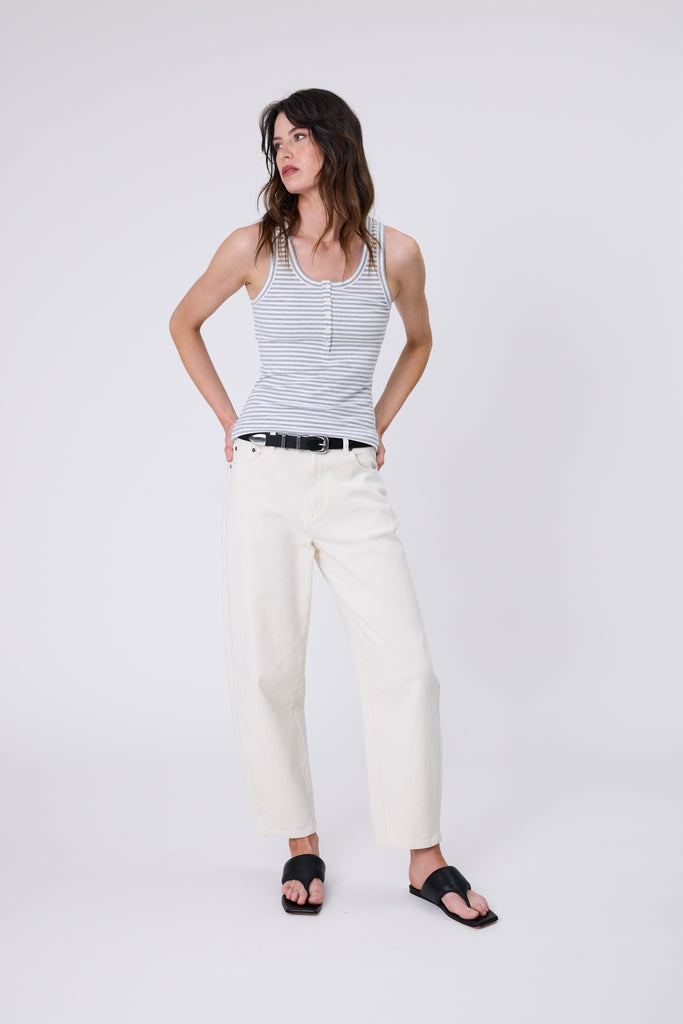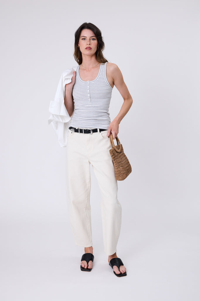 A versatile wardrobe staple, the Essence Henley Tank adds a subtle pop of stripe to any outfit. Crafted from soft cotton stretch knit fabric with a fine rib-knit texture, it features a flattering scoop neckline and slim silhouette. Perfect layered under shirts and cardigans, or simply worn on its own.