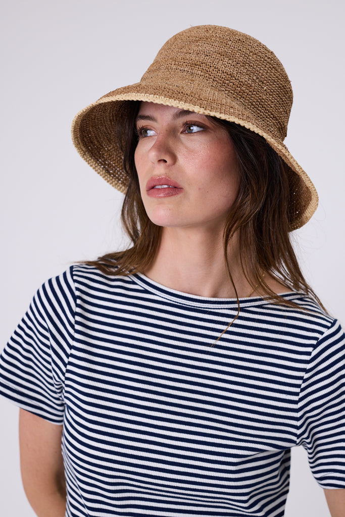 From beach days to BBQs, our Positano Bucket Hat is your chic essential for sunny days. Made from 100% Raffia, this bucket hat is skillfully handwoven and hand-dyed by artisans in Madagascar. Lightweight and packable, it’s easy to roll up and take on the go. Crafted with tea-coloured raffia accented with a natural trim. The adjustable internal cotton twill tie ensures the perfect fit.
