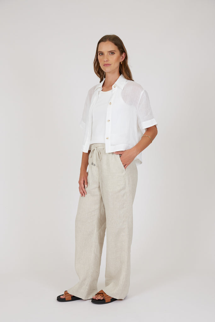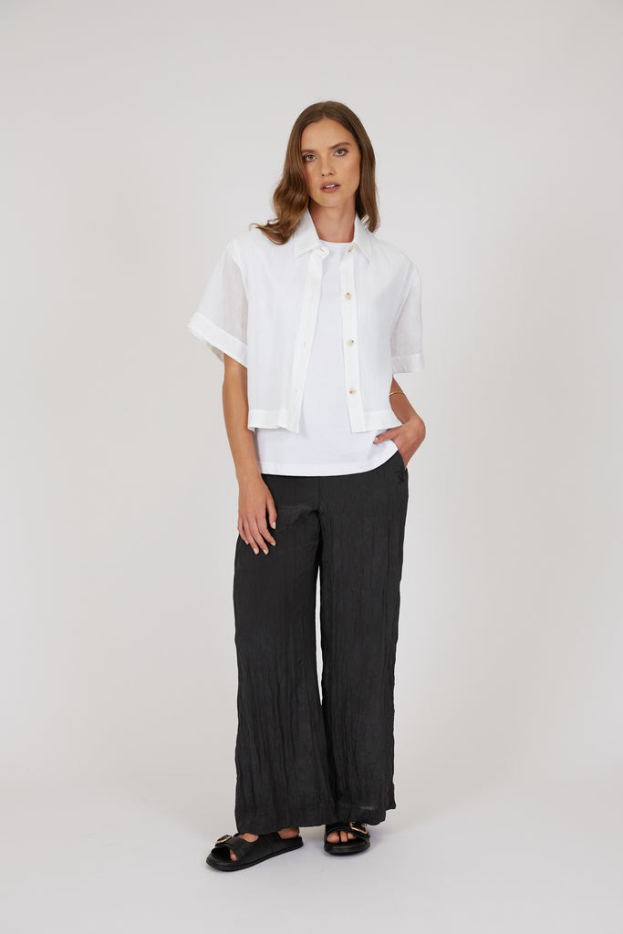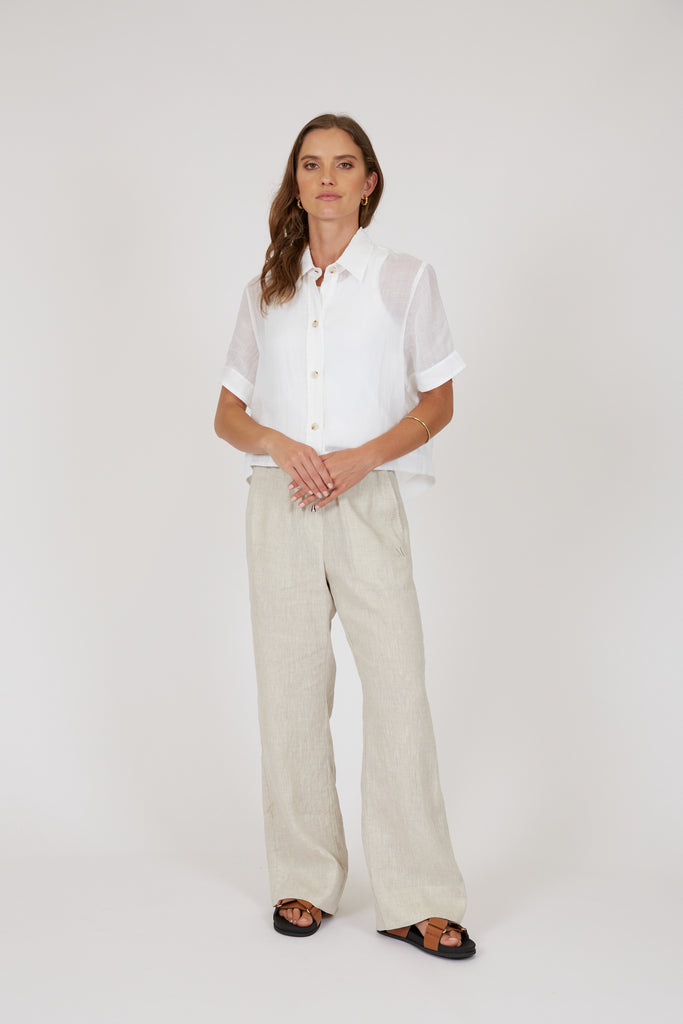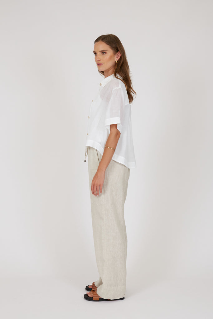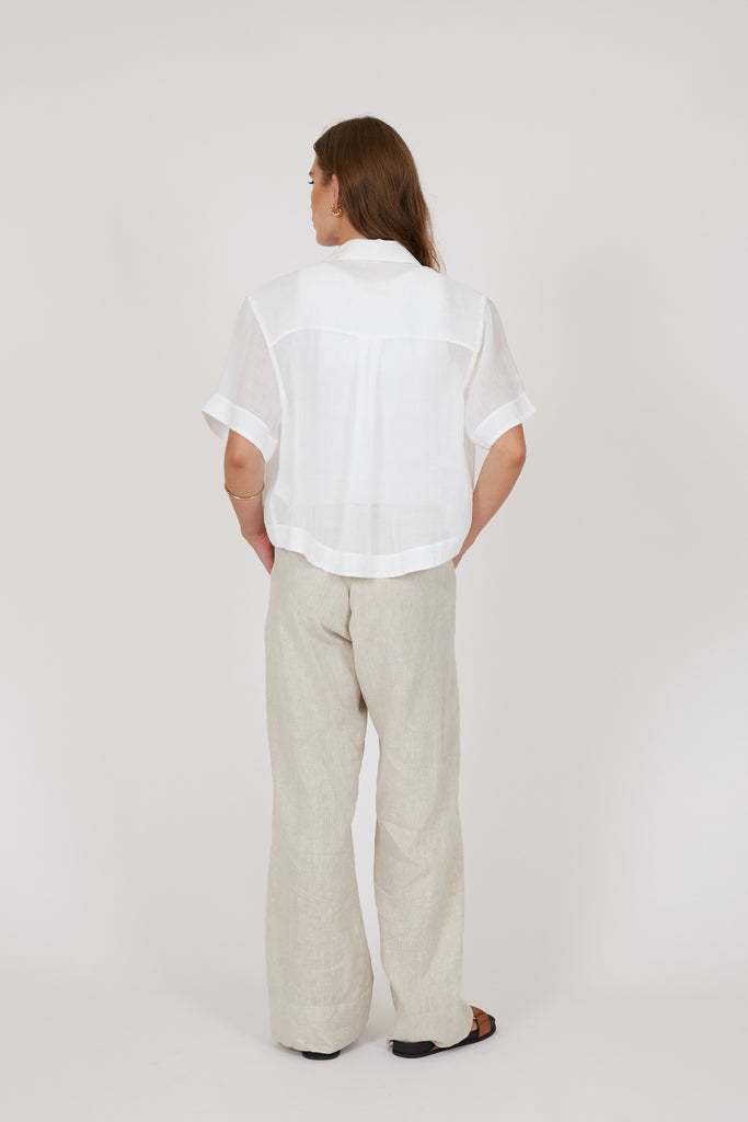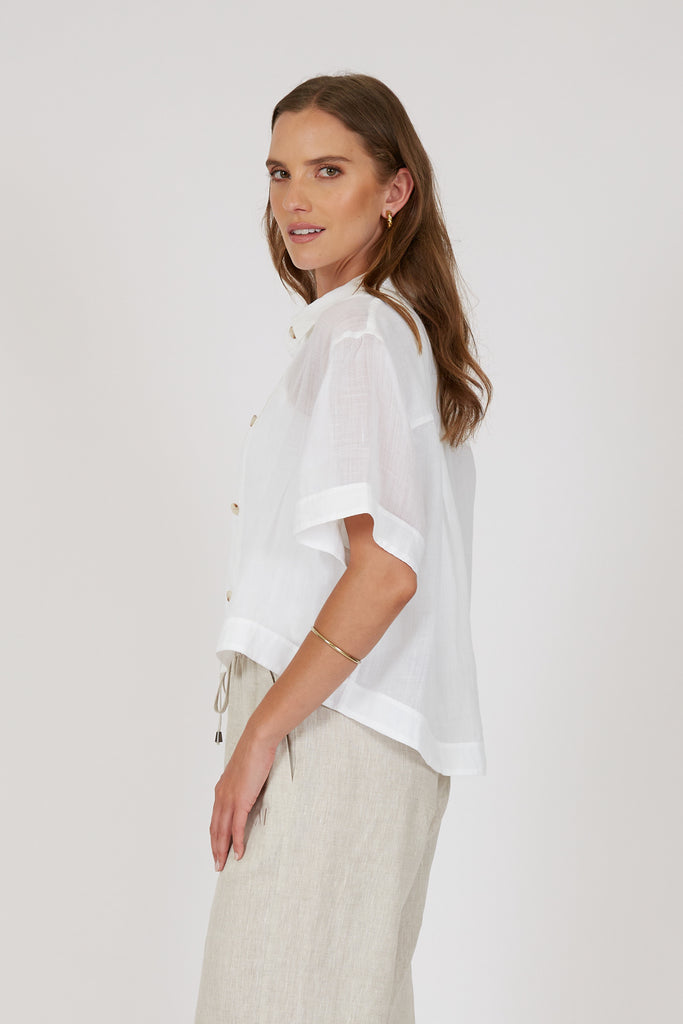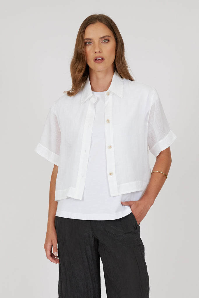 A warm-weather staple, the Dawn Shirt is a cropped, short-sleeve style designed in an easy, boxy fit. Crafted from breathable, lightweight Ramie with a slightly sheer finish, it’s the perfect light cover-up for the warmer months. Finished with tort buttons, wide cuffs, and a clean hem, this versatile piece can be layered buttoned up over a tank or worn open over your favourite sleeveless summer dresses.
